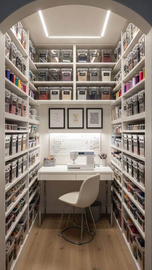 A minimalist craft space focuses on simplicity, functionality, and calm. This style is ideal for people who feel overwhelmed by clutter and prefer a clean aesthetic.
