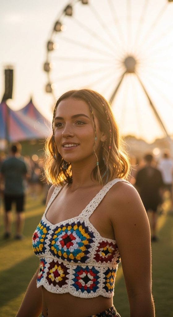 The granny square is iconic, but the modern version is all about color placement and fit. This blouse uses four large, intricate squares joined together to create a boxy, retro-chic silhouette that screams summer festival.