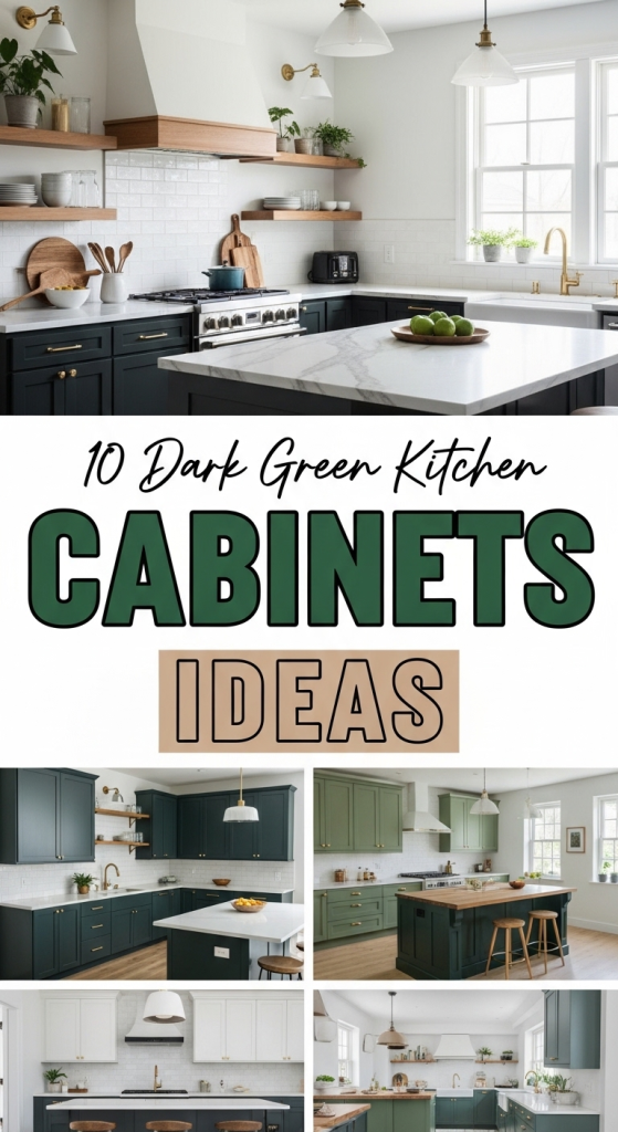 5. Two-Tone Kitchen with Dark Green Cabinets