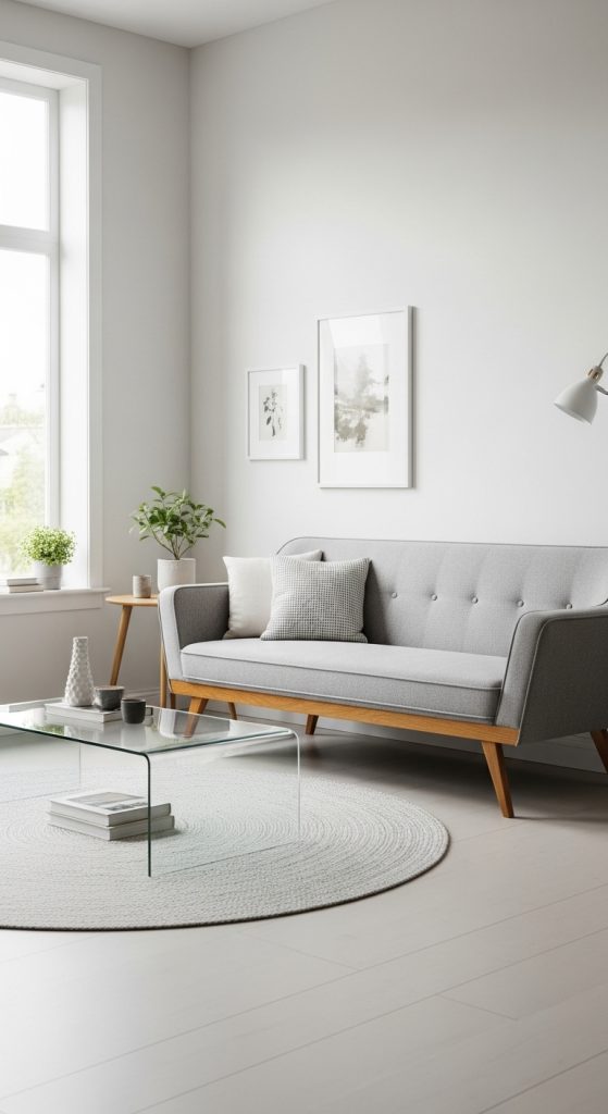 In a small room, you want to see as much of the floor as possible. Avoid “heavy” furniture that sits flat on the ground (like a skirted sofa). Instead, choose pieces with tall, tapered legs. This allows light to pass underneath, tricking the brain into thinking the room is much larger than it is.
