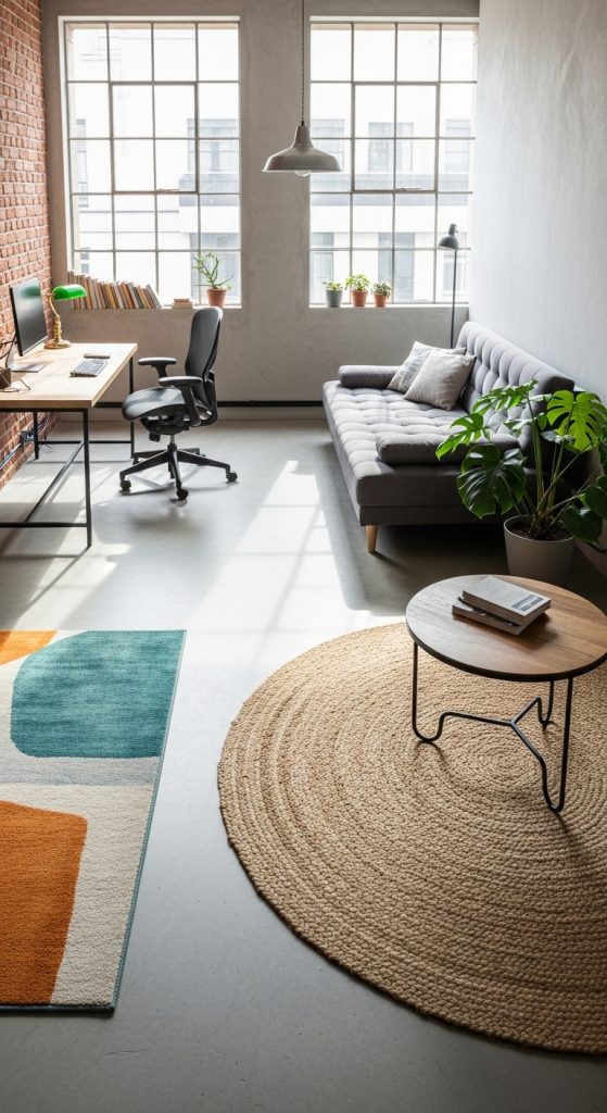 If you live in a studio, your “living room” and “bedroom” are the same place. Use different area rugs to define these zones. A rug acts as a visual boundary, telling the brain, “This is the lounge, and over there is the office.”