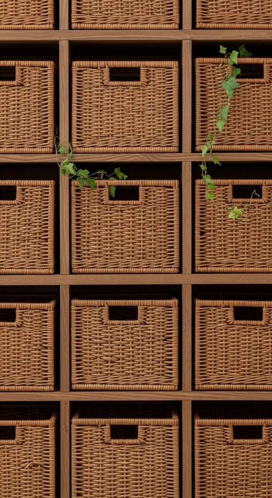 Visible “stuff” makes a small room feel smaller. Even if your shelves are organized, a mix of different colored items looks busy. Use uniform baskets (all wicker, or all black wire) to hide the chaos.