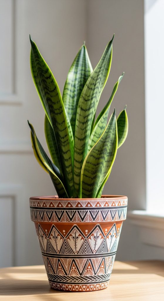 Bohemian style is all about patterns and personality. You can turn a simple clay pot into a piece of art using just a few paint pens. By using black and white designs on the natural orange clay, you get a high-contrast look that makes your green plants pop.