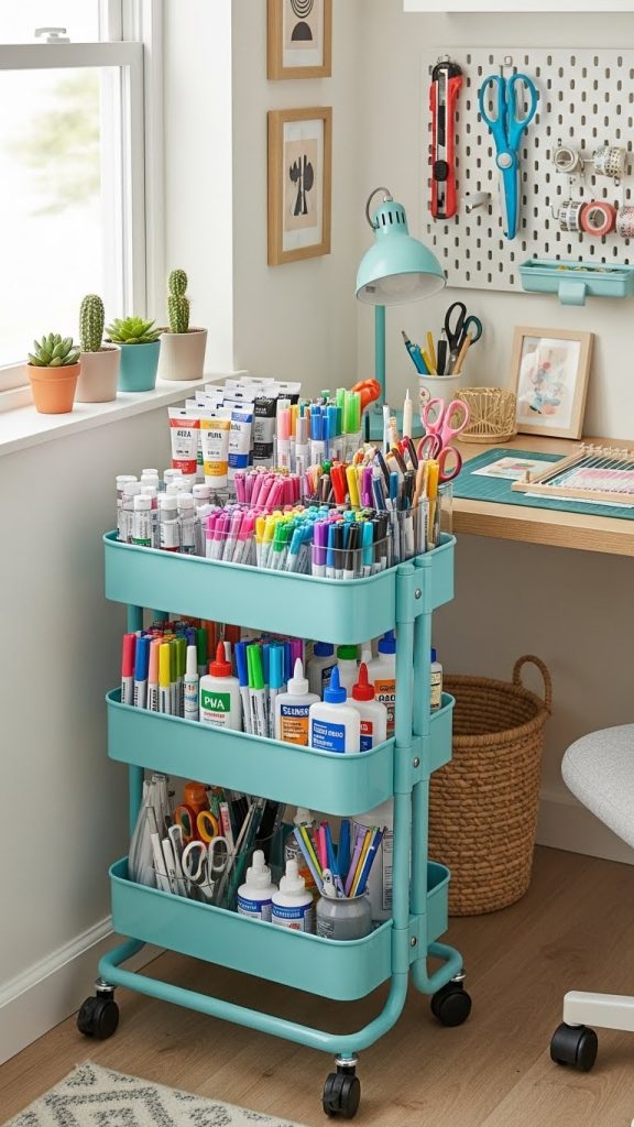 4. Rolling Carts for Portable Craft Supplies