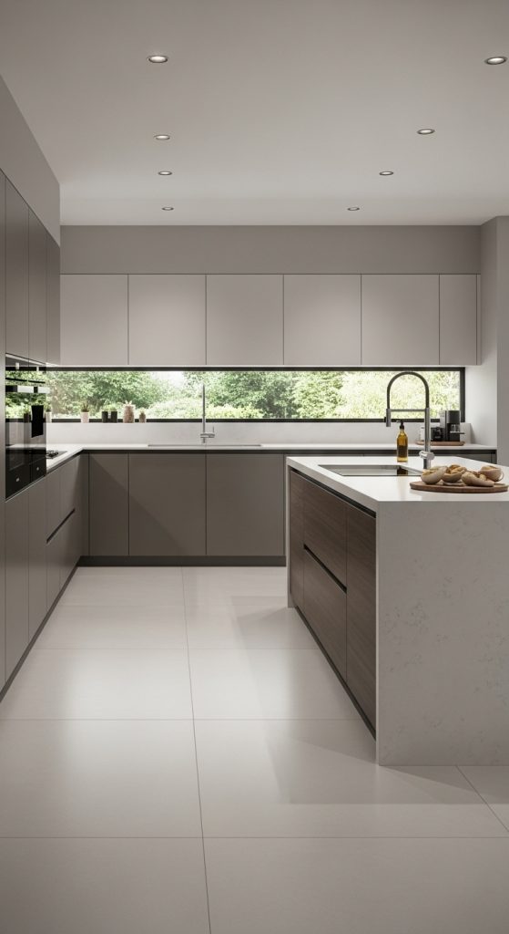 Large tiles with fewer grout lines create a seamless and clean look. They are easy to maintain and give your kitchen a modern finish.
