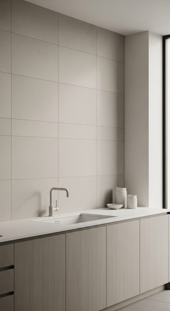 Matte tiles in neutral tones like beige, grey, or cream create a soft and elegant look. They reduce glare and give your kitchen a modern touch.