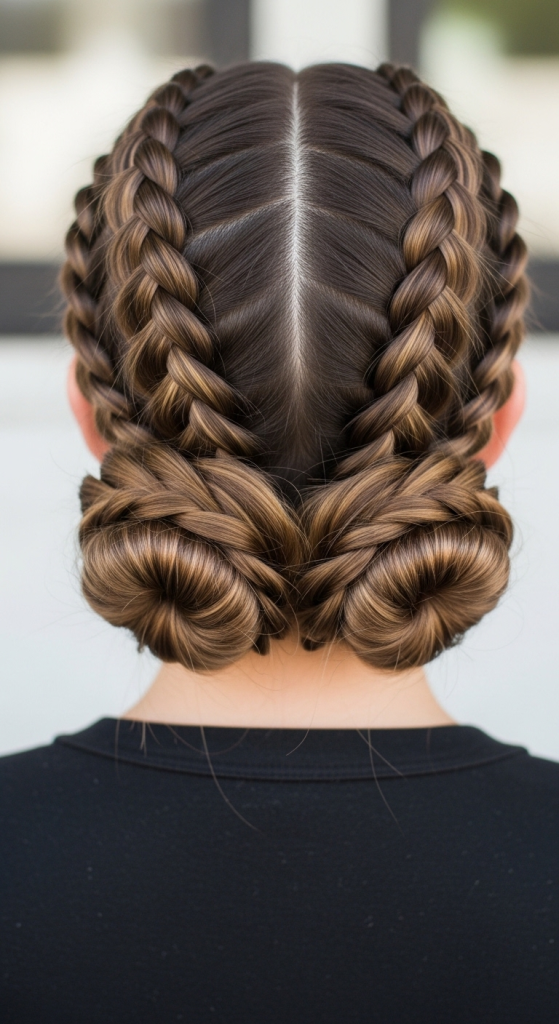 If you prefer a lower center of gravity, double French braids ending in small, tight buns at the nape of the neck are perfect. This style is incredibly balanced, so you won’t feel your hair “pulling” to one side during turns.