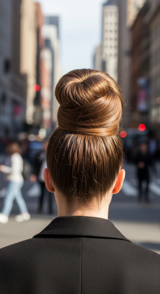 If you’re growing out your bangs or have short layers at the front, braid just the front section along your hairline (a lace braid) and pull the rest into a messy-but-secure bun. It keeps the “distraction zone” clear.