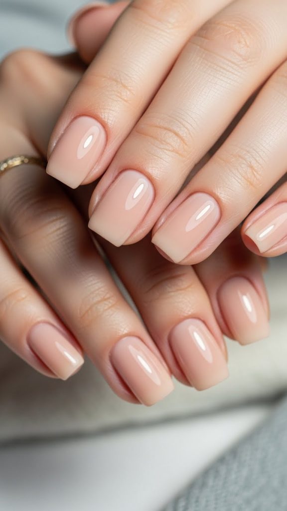 Soft beige nude nails are timeless and elegant. This shade is slightly warmer than milky nude and adds a touch of sophistication. Short beige nude nails look clean and professional, making them ideal for work and daily wear.