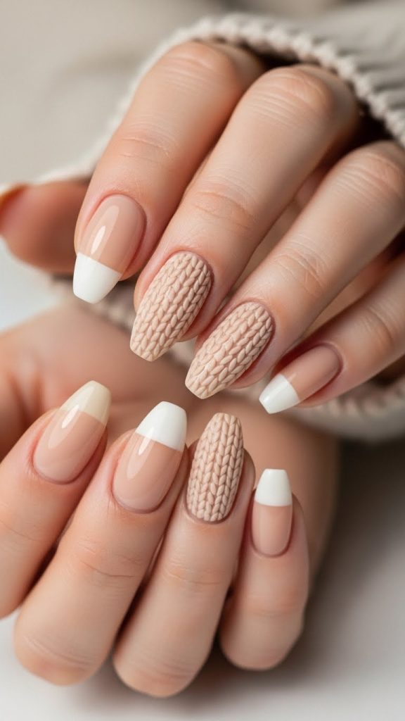 On short nude nails, textured designs add interest without making the nails look busy. These designs are perfect for Pinterest boards that focus on cozy winter aesthetics.