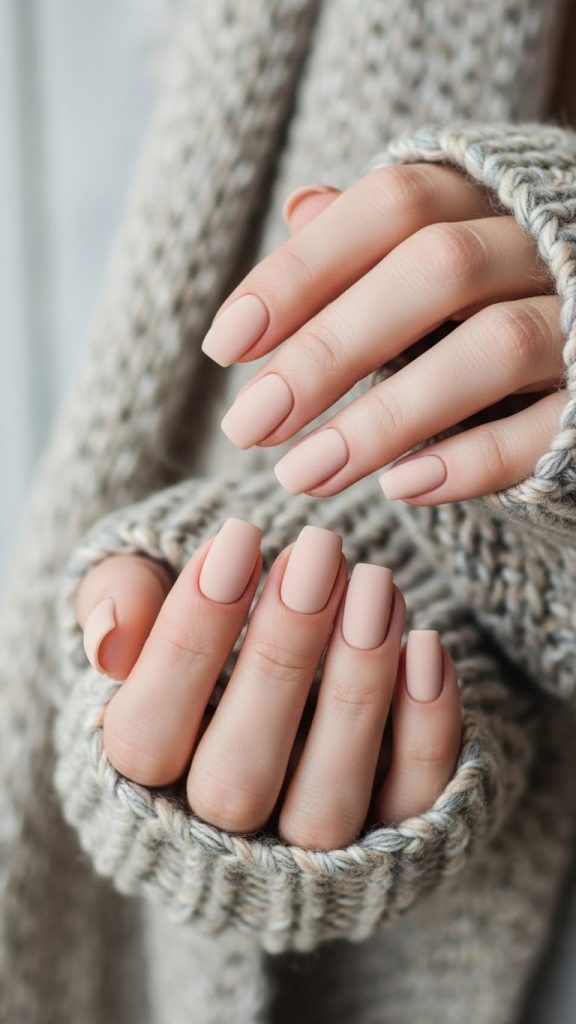 A matte nude manicure gives a cozy and understated vibe that matches winter moods perfectly. It also photographs beautifully, making it a favorite for Pinterest content.
