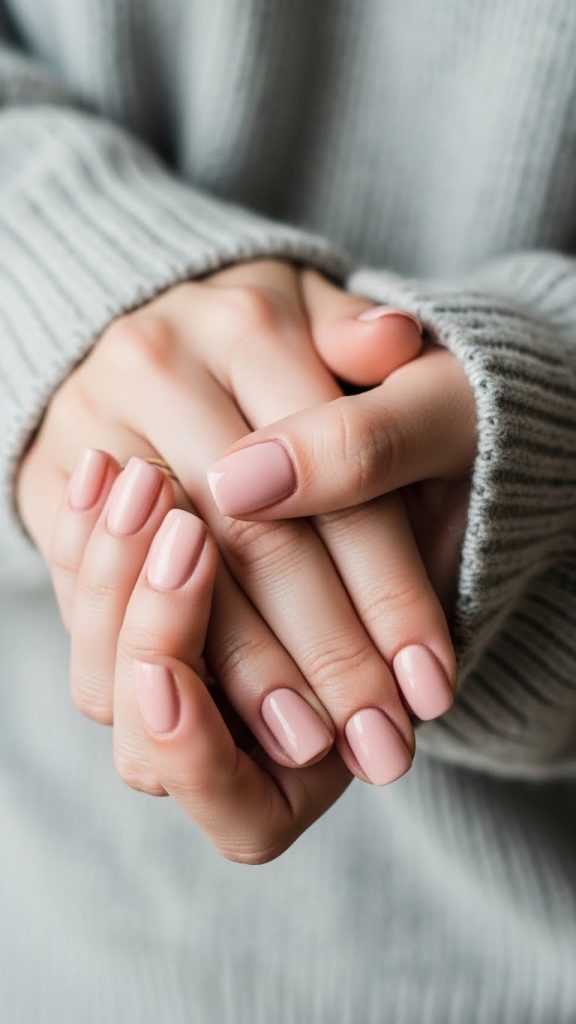 This style focuses on nail health and cleanliness, making it ideal for winter when nails need extra care. Short natural nude nails look polished and effortless.